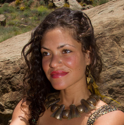AnJa Indirani is a dynamic and inspiring performer. Born in London of Indian ancestry, AnJa moved to North Carolina as a young girl and has been living in the San Diego area since the age of 18. She is the CFO of a hotel during the weekdays, operates her own online store and performance company (Indirani.com), and blends tribal fusion belly dancing with fire dancing and other dance props such as Isis wings, silk fans, and swords. Her powerful sultry performances spring from the Soul and always touch the witnesses to the experience deeply. We are truly blessed to have her be a part of our ever-growing global Tribal community of dance artists. Becoming the avatar of Saraswati for the 64 Dakini Oracle was a profoundly transformative archetypal revelation for AnJa, putting her in touch with the compassionate well-spring of musically artistic Divine Grace that the Goddess in partnership with Brahma embodies. It will be an experience she never forgets, and it was an honor and a true pleasure working with Penny and Wendy and personifying the spirit of Saraswati . AnJa fully relates to Saraswati as she very much enjoys learning, knowledge, music and the creative arts. She hopes and prays that the 64 Dakini Oracle will awaken Divine archetypal energies in an ever-expanding circle of blossoming human beings.